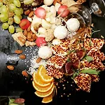 Hotel nabízí denně podávanou bezplatnou veganskou snídani. Grieks restaurant Elaia podává Griekse keuken jídlo. Drinky jsou k dispozici v baru v hale.